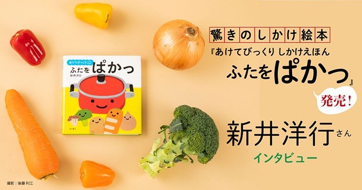 あかちゃんとママ&パパに喜ばれる絵本を、数多く生み出している絵本作家、新井洋行さん。『れいぞうこ』など「あけて・あけてえほん」シリーズ(偕成社)や、『ひだり みぎ』(KADOKAWA)といった読者参加型の絵本作りに定評がある人気作家さんです。さて、そんな新井さんが語る、新作絵本の見どころは……? 『あけてびっくり しかけえほん ふたをぱかっ』(KADOKAWA)についてお話を伺いました。