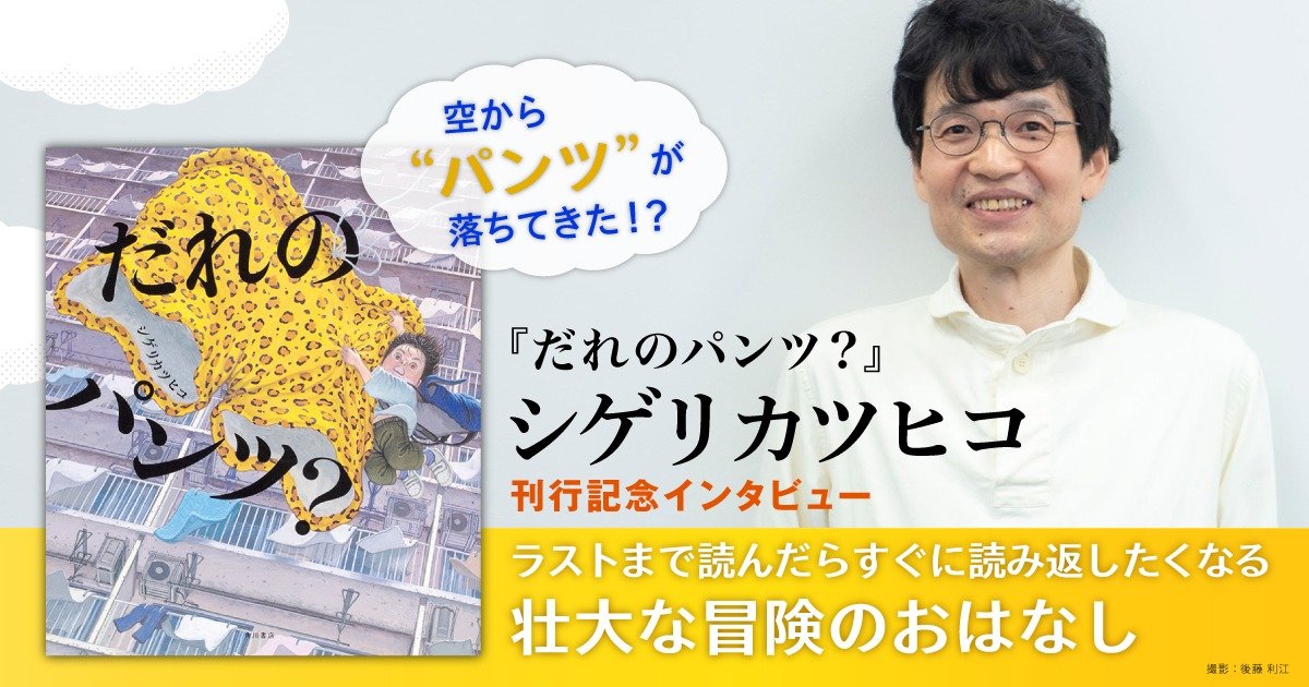 『大名行列』で小学館児童出版文化賞を受賞した絵本作家シゲリカツヒコさんの受賞第一作となる新刊『だれのパンツ?』が出版されました。団地の前の公園で遊んでいたら、空からパンツが落ちてきた!? 持ち主に届けようと団地に入ると、住んでいたのはカメレオンにおばけ……。奇妙な世界に迷い込んだ主人公タロウの壮大な冒険のお話を、シゲリさんならではの巧緻な筆致で描き込んだ一冊です。刊行を記念して、絵本作家になるまでのことや新刊の制作エピソードなどを伺いました。