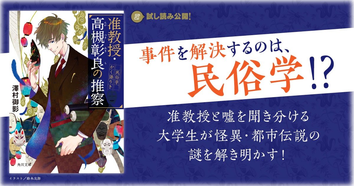 澤村御影さんの新作『准教授・高槻彰良の推察 民俗学かく語りき』が11月22日に角川文庫より発売されます。発売を記念し、カドブンでは、11/19,21,23の3日間にわたって試し読みを配信します!