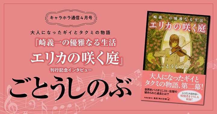 累計500万部突破の「タクミくん」シリーズに連なる、大人になったギイとタクミの物語・第2弾として、今月、角川文庫より『崎義一の優雅なる生活 エリカの咲く庭』が刊行されました。作者のごとうしのぶさんに、本作への思いをうかがいます!
